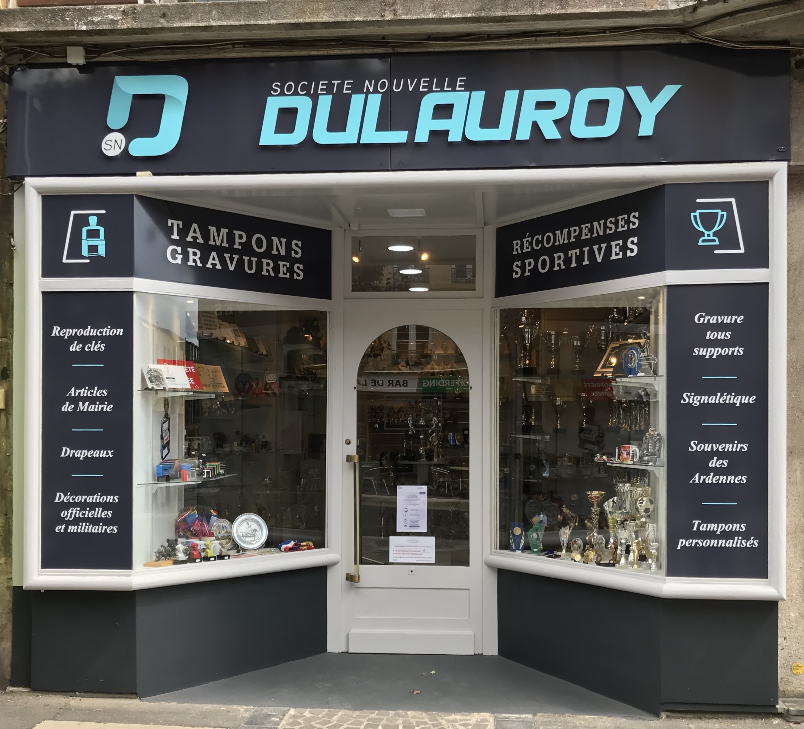 Située en plein centre-ville de Charleville-Mézières dans les Ardennes (08), Société Nouvelle Dulauroy vous accueille pour la fabrication et la vente de gravures sur tout support, clés minute et tampons marqueurs personnalisés. Que vous soyez d'ici ou des alentours, tel Sedan ou Rethel, contactez vos professionnels pour des souvenirs typiques de la région des Ardennes.